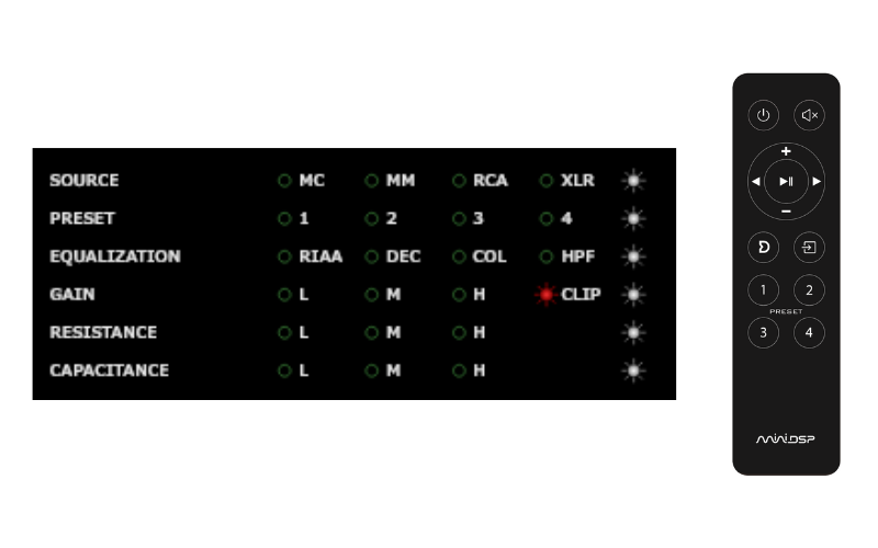 MCとMMカートリッジの切り替え、RIAAからDeccaやColumbiaなどのフォノEQの切り替えなどは、付属のリモコンで簡単に行えます。